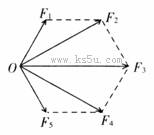 4.如图所示,作用于O点的五个恒力的矢量图的末端跟O点恰好构成一个正六边形。这五个力的合力是最大力的 ( )