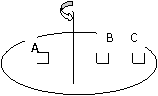 9.如图所示,水平转台上放着A、B、C三物,质量分别为2m、m、m,离转轴距离分别为R、R、2R,与转台摩擦因数相同,转台旋转时,下列说法中,正确的是: