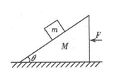 17.如图10所示,质量为M、倾角为θ的斜面体放于水平面上,质量为m的物块放在斜面上,它们之间的摩擦力都忽略不计.要使物块相对斜面静止不动,斜面体向左运动所受到的水平推力为______,此时斜面受到的压力是________。
