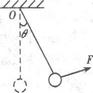16.细线下挂一个质量为m的小球,现用一个力F拉小球使悬线偏离竖直方向θ角处于静止状态,如图9所示,则拉力F的最小值为 ,与竖立方向间夹角为 。