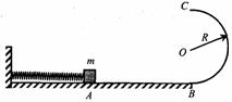 (12分)如图所示,光滑水平面AB与竖直面内半圆形导轨在B点相接,导轨半径为R。一个质量为m的物体将弹簧压缩至A点后由静止释放,在弹力作用下物体获得某一向右速度,当它经过B点进入导轨瞬间对导轨的压力为其重力的7倍,之后向上运动恰能完成半圆周运动到达C点。求: