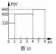 0时刻由静止开始下降,在0到6s内体重计示数F的变化如图10所示。试问:在这段时间内电梯下降的高度是多少?取重力加速度