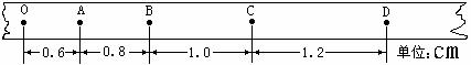 14.如图所示,是用打点计时器获得的一条比较理想的纸带的一部分,根据纸带给出的数据和相邻两个测量点间的时间间隔T=0.1s,则从O点到B点的平均速度 m/s,从B点到D点的平均速度是 m/s。