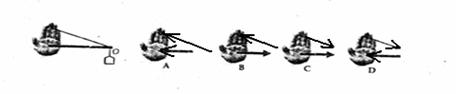 7.某同学用一根细绳和一根铅笔组成三角支架,绳的一端绕在手指上,铅笔的一端顶在手掌心,当在O处挂上重物时,绳与杆对手掌均有作用,对这两个作用力的方向判断完全正确的是图中的( )