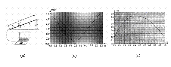 12.如图(a),质量为M的滑块A放在气垫导轨B上,C为位移传感器,它能将滑块A到传感器C的距离数据实时传送到计算机上,经计算机处理后在屏幕上显示滑块A的位移-时间(s-t)图象和速率-时间(v-t)图象。整个装置置于高度可调节的斜面上,斜面的长度为l、高度为h。(取重力加速度g=9.8m/s2,结果保留一位有效数字)。