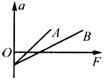 如图所示,A、B两条直线是在A、B两地分别用竖直向上的F拉质量分别为mA和mB的两个物体得出的加速度a与力F之间的关系图线,分析图线可知( )
