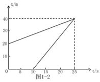 2、做直线运动的甲、乙两物体的位移--时间图象如图1-2所