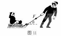 17.(10分)如图11所示,质量为30 kg的小孩坐在10 kg的雪橇上,大人用与水平方向成37°斜向上的拉力拉雪橇,力的大小为100 N,雪橇与地面间的动摩擦因数为0.2.求: