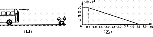 处有一只狗,如图(甲)所示,司机立即采取制动措施.若从司机看见狗开始计时(