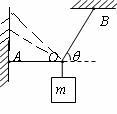 如图所示,斜绳OB(与水平方向夹450)与水平绳OA最大承受拉力分别为20N和10N,竖直绳抗拉能力足够强,三绳系于O点,(1)问各绳均不断时,最多可悬吊多重的物体?(2)若通过增长OA长度将细绳0A的悬点缓慢地向上移动(移至OA接近竖直),移动过程中并保持绳子OB不动,问这个过程绳子