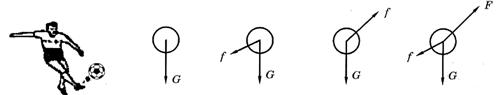 刻的受力图中,正确的是(G为重力,F为脚对球的作用力,f为空气阻力)