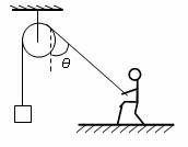 如图所示,质量为M的人通过定滑轮将质量为m的重物以加速度a上提。若绳与竖直方向夹角为θ,求:(12分)