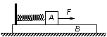 18、如图所示,两质量相等的物块A、B通过一轻质弹簧连接,B足够长、放置在水平面上,所有接触面均光滑。弹簧开始时处于原长,运动过程中始终处在弹性限度内。在物块A上施加一个水平恒力F,在A、B从静止开始运动到第一次速度相等的过程中
