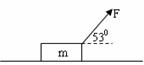 (10分)如图所示,质量m为1.0kg的物体静止在水平地面上,一人用与水平面成530角的大小为5.0N的恒力F作用下沿水平面做直线运动,当经过时间t=2.0s,物体发生的位移S为4.0m时撤去该恒力F,求:(g=10m/s2,sin530=0.8,cos530=0.6)