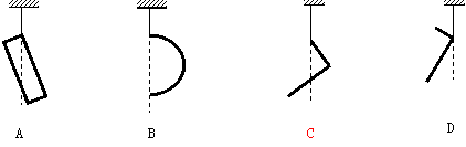 5. 如图所示,A为矩形匀质薄板,B为半圆形钢条,C、D均为直角形支架,把这些物体分别用细绳竖直悬挂,静止时所处的位置符合实际的是