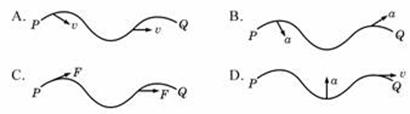 9. 质点在一平面内沿曲线由P运动到Q,如果用v、a、F分别表示质点运动过程中的速度、加速度和受到的合外力,下列图象可能正确的是 ( )