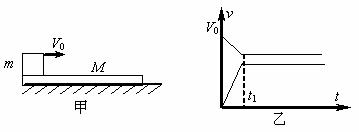 如下图甲所示,一质量为M的木板静止在光滑水平地面上,现有一质量为m的小滑块以一定的初速度v0从木板的左端开始向木板的右端滑行,滑块和木板的水平速度大小随时间变化的情况如图乙所示,根据图象作出如下判断正确的是( )