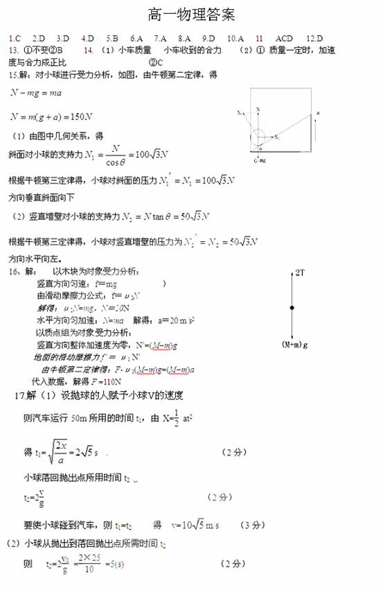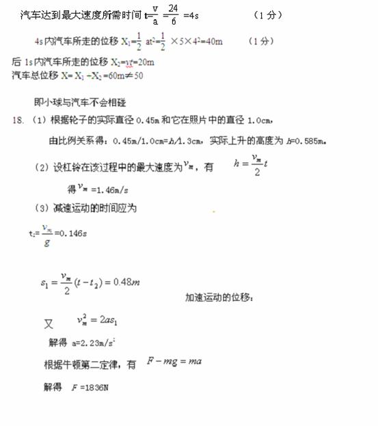 17.一辆汽车从静止开始以5m/s2的加速度在平直公路上作匀加速直线运动,在汽车开动的同时,前方50 m处,一个人正竖直向上抛一个小球。(忽略空气阻力的影响,忽略人和车的形状和大小,g取10m/s2)。
