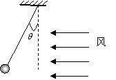 (7分)悬挂着的小球重6N,在均匀的水平风力作用下偏离了竖直方向θ=37°角而处于静止状态。求风对小球的作用力F和绳子的拉力T 。(sin37o=0.6,cos37o=0.8,tan37o=0.75)