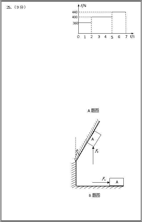 (2) 若用A对倾角θ=37°的斜壁进行打磨(如图所示),当对A加竖直向上的推力F2=60N时,磨石A从静止开始沿斜壁向上运动2m(斜壁长大于2m)所需时间为多少?(sin37o=0.6,cos37o=0.8)