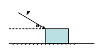 如图所示,质量m=2kg的物体处于水平地面上,在推力F作用下由静止开始向右运动了一段距离s=2m。已知图中θ=37ْ,力F的大小为10N,物体与地面间的滑动摩擦因数μ=0.2,g取10 m/s2。求: