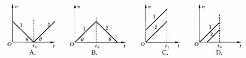 6.如图所示,可以表示两个做自由落体运动的物体同时落地的速度-时间图象的是(t0表示落地时间) ( )