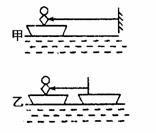 一个小孩站在船头,按图两种情况用同样大小的力拉绳,经过相同的时间