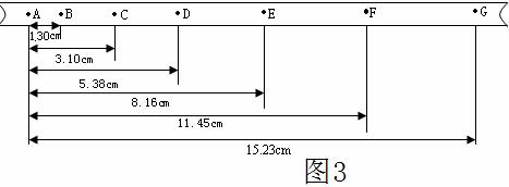 (2)研究匀变速直线运动的实验中,如图4所示为一次记录小车运动情况的纸带,图中A、B、C、D、E、F、G为相邻的计数点,相邻计数点的时间间隔T=0.1s,则C点的瞬时速度为 m/s,小车运动的加速度a= m/s2 (结果皆保留两位有效数字)。