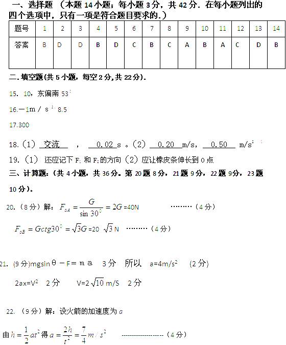 23.(10分)解:在反应时间内,汽车作匀速直线运动。则:运动的距离: