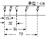 (6分)用打点计时器研究匀变速运动实验中。小车拖动纸带运动,打点计时器在纸带上打下了一系列的点,从中选出的一条纸带如图,图上相邻两个计数点之间还有四点未画出,这相邻两个计数点之间时间间隔为