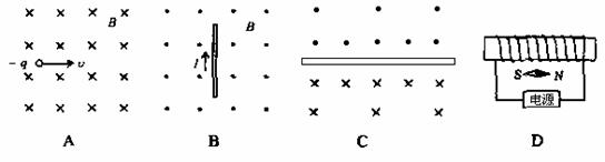 9.画出图中A图中带电粒子受到的磁场力方向;B图中通电导线受到的磁场力方向;C图中通电直导线中电流的方向;D图中电源的极性.