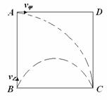 (10分)如图所示,ABCD是一个正方形的匀强磁场区域,由静止开始经相同电压加速后的甲、乙两种带电粒子,分别从A、B两点射入磁场,结果均从C点射出,则它们的速率v甲︰v乙为多大?,它们通过该磁场所用的时间t甲︰t乙为多大?