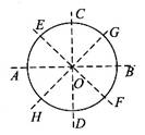 如图,A、B、C、D、E、F、G、H分别为圆的直径与圆的交点,且直径AB、CD、EF、GH把圆周等分成八份。现在A、B两点分别放等量异种点电荷。对于圆周上的各点,其中电场强度相同的两点是( )