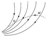 图中的实线表示电场线,虚线表示只受电场力作用的带正电粒子的运动轨迹,粒子先经过M点,再经过N点,可以判定 ( )