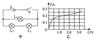 6.在如图所示的电路中,电源电动势为3.0V,内阻不计, L1、L2、L3为3个相同规格的小灯泡,这种小灯泡的伏安特性曲线如图乙所示。当开关S闭合后 ( )