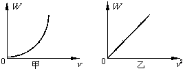 在《探究功与物体速度变化关系》的实验中,甲、乙两位同学的实验操作均正确。甲同学根据实验数据作出了功和速度的关系图线,即