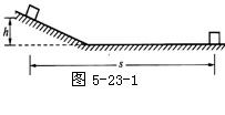 9.如图5-23-1所示,一个物体从斜面上高h处由静止滑下并紧接着在水平面上滑行一段距离后停止,测得停止处与开始运动处的水平距离为s,不考虑物体滑至斜面底端的碰撞作用,并认为斜面与水平面对物体的动摩擦因数相同,求动摩擦因数μ
