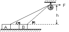 3-1-3、某人利用如图所示的装置,用100N的恒力F作用于不计质量的细绳的一端,将物体从水平面上的A点移到B点.已知α1=30°,α2=37°,h=1.5m,不计滑轮质量及绳与滑轮间的摩擦。求绳的拉力对物体所做的功。