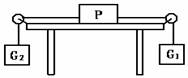 如图所示。放在水平桌面上的物体P与桌面间最大静摩擦力为5N,桌两端是两个不计摩擦的定滑轮,右端吊着重G1=15N的物体,左端吊着重G2的物体,为使物体P静止G2应为多重?若G2重为15N时,P受的静摩擦多大?