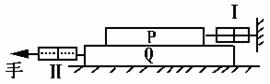 如图所示,物体P放在Q之上,Q在光滑水平面上。弹簧秤Ⅰ,其左端与物体P相连,右端与墙相连;弹簧秤Ⅱ右端与Q相连,左端用手水平拉着。当Ⅰ的示数为2N时,Ⅱ的示数为3N,则:( )