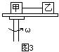 一圆盘可以绕其竖直轴在水平面内转动,圆盘半径为R,甲、乙两物体的质量分别为M与m(M>m),它们与圆盘之间的最大静摩擦力均为正压力的μ倍,两物体用一根长为l(l<R)的轻绳连在一起,如图3所示,若将甲物体放在转轴的位置上,甲、乙之间接线刚好沿半径方向拉直,要使两物体与转盘之间不发生相对滑动,则转盘旋转的角速度最大值不得超过 [ ]