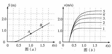 C.在相同的实验条件下,同学们首先测量了单只“小纸杯”在空中下落过程中不同时刻的下落距离,将数据填入下表中,下图(a)是对应的位移一时间图线.然后将不同数量的“小纸杯”叠放在一起从空中下落,分别测出它们的速度一时间图线,如图(b)中图线l、2、3、4、5所示.