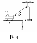 如图4所示,汽车以速度v匀速行驶,当汽车到达P点时,绳子与水平方向的夹角为θ,求此时物体A的速度大小是多少?
