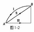 2. 如图1-2所示,一物体沿三条不同的路径由A运动到B,下列关于它们的位移的大小说法正确的是 ( )