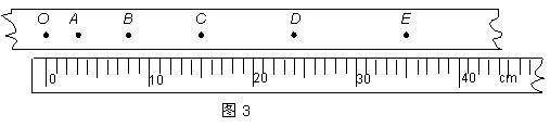 6.某组学生研究小车从斜面上滑下实验,得到如图3所示的纸带,纸带上的计数点用O、A、B、C、D、E表示。根据图上数据,可判断小车做 运动,小车经过AC段的平均速度是____ ___m/s。(相邻计数点间的时间间隔为0.1s)