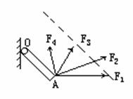 如图所示,直杆OA可绕O点转动,在端A点依次向不同方向加上四个力F1、F2、F3、F4,力的作用线与OA杆在同一竖直面内,四个力的大小关系如图所示(图中虚线平行于直杆),它们对O点的力矩大小分别为M1、M2、M3、M4,则