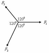 14、如图所示,F1=F3=3N,F2=4N,它们之间的夹角都是1200,则这三个力的合力大小为 N,方向 。