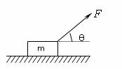 19、(10分)如图所示,放在水平面上质量为m的物体受一个斜上的拉力F,这个力与水平方向成