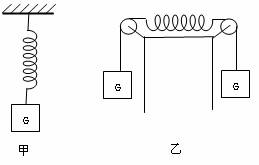 5-1.图中甲、乙两图是完全相同的轻弹簧秤,所挂重物也完全相同,甲中弹簧秤示数为10N,则乙中弹簧秤示数是( )