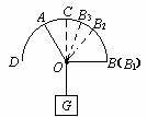 10-1.半圆形支架BAD上悬着两细绳OA和OB,结于圆心O,下悬重为G的物体,使OA绳固定不动,将OB绳的B端沿半圆支架从水平位置逐渐移至竖直的位置C的过程中,如图所示,OA绳受力大小变化情况是___________OB绳受力大小变化情况是_____________.